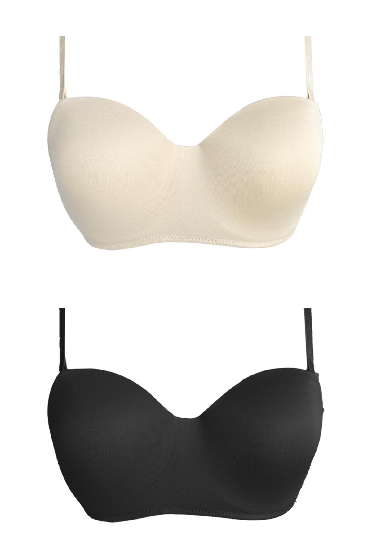Balenli Toparlayıcı Dolgusuz Straplez Sütyen 2'li Paket