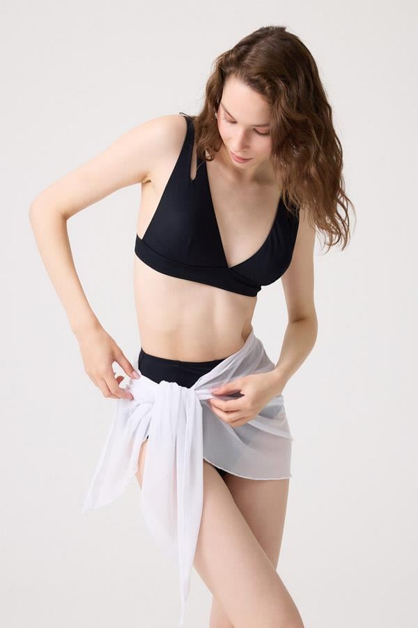 Beyaz Transparan Tül Pareo Siyah Transparan Tül Pareo Transparan Desenli Tül Pareo Transparan Desenli İpek Saten Pareo