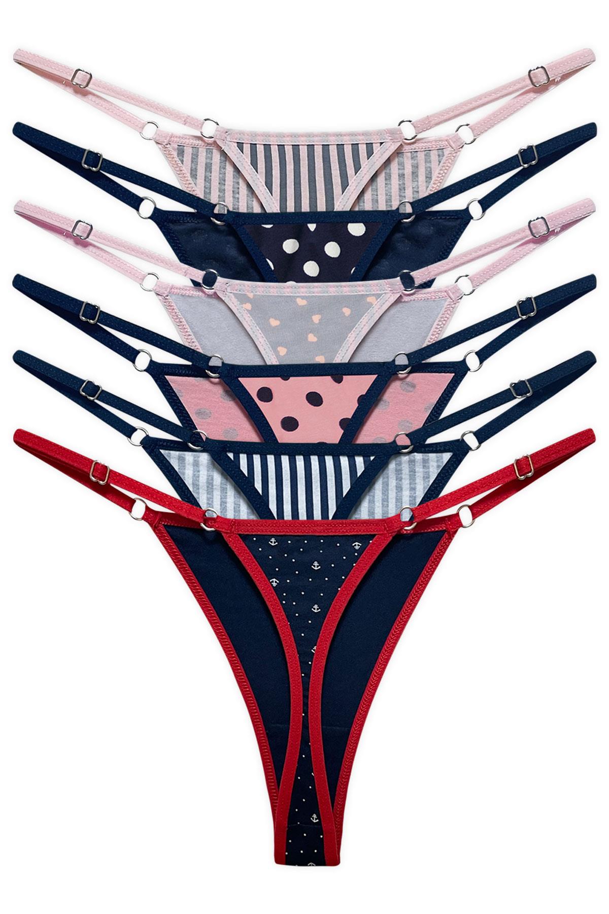 Desenli Basic Pamuklu Beli Ayarlanır Kadın Tanga Külot 6lı Paket Desenli Basic Pamuklu Beli Ayarlanır Tanga Külot 6lı Paket - 2 Desenli Basic Pamuklu Beli Ayarlanır Tanga Külot 6lı Paket - 3
