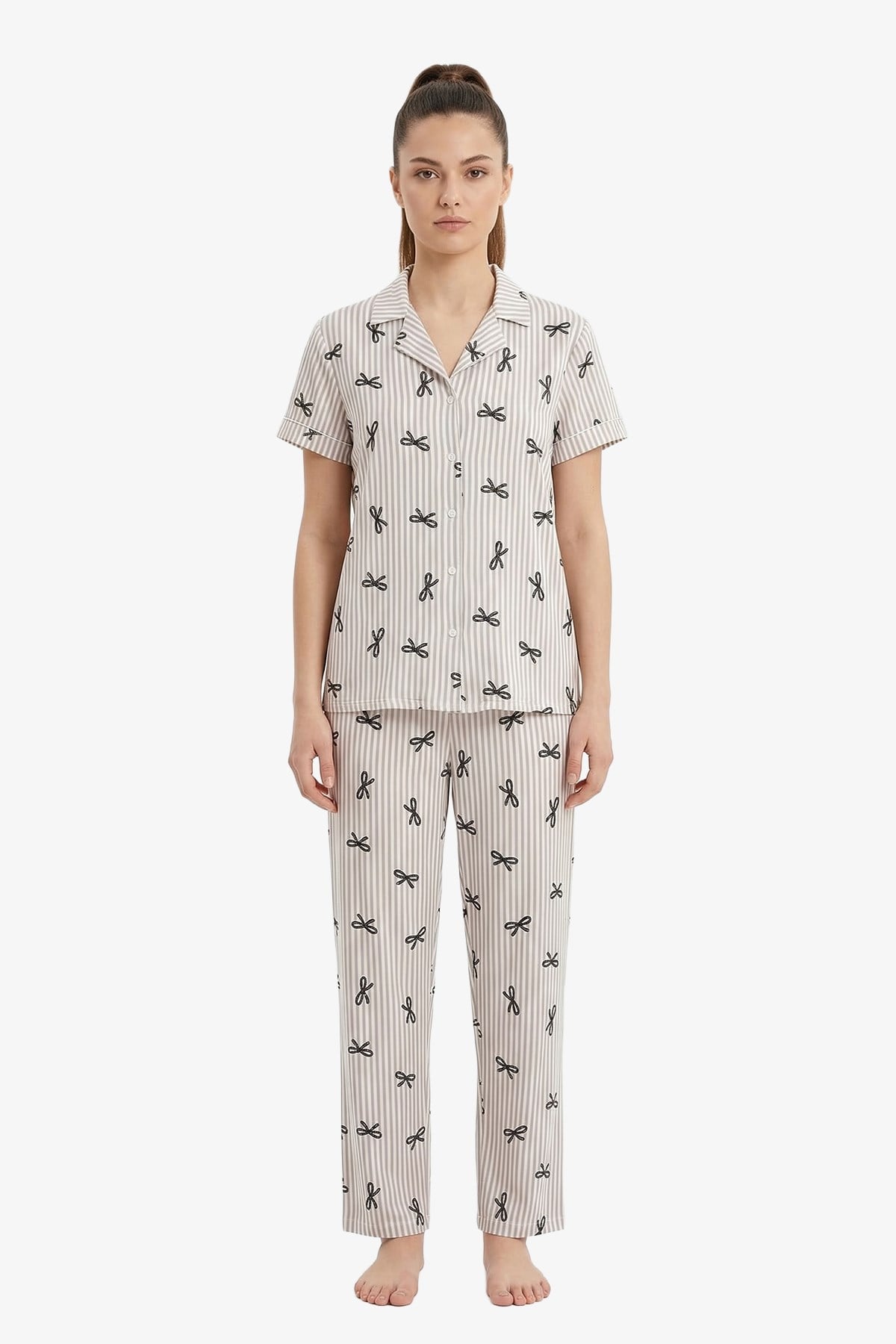 Desenli Yumuşak Dokulu Gömlek Yaka Kadın Pijama Takımı