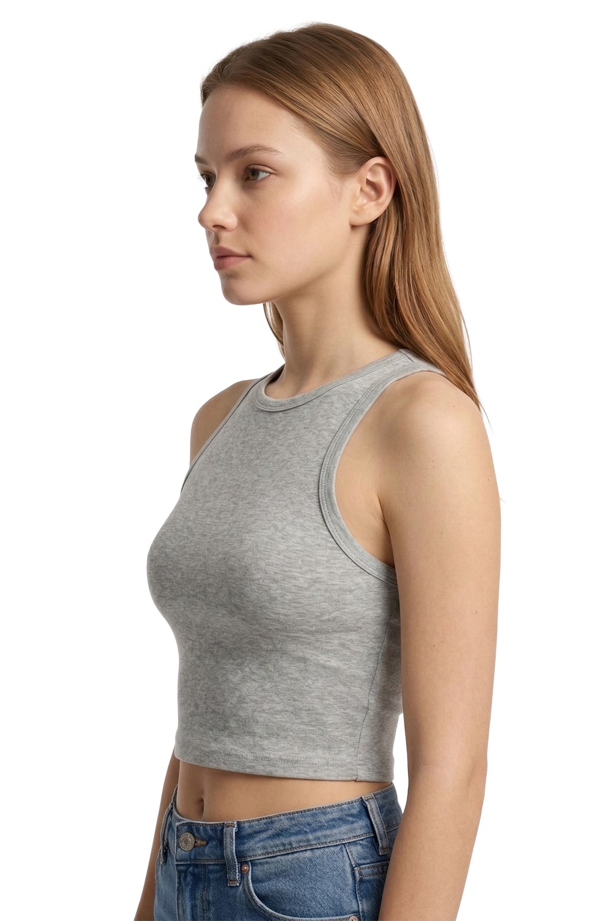 Gri Melanj Viskon Bisiklet Yaka Kolsuz Kadın Crop Atlet (CH30043704GR)