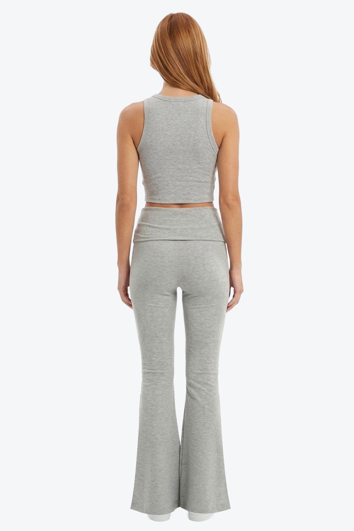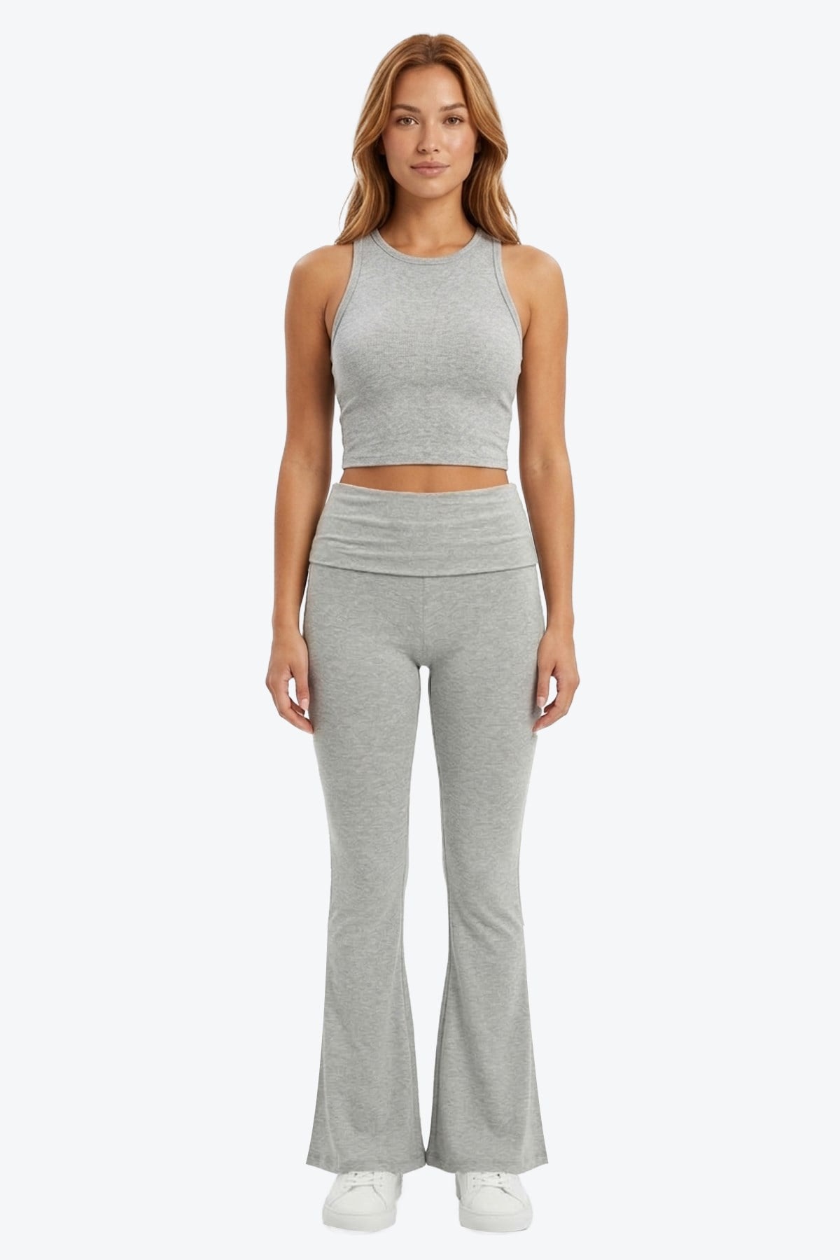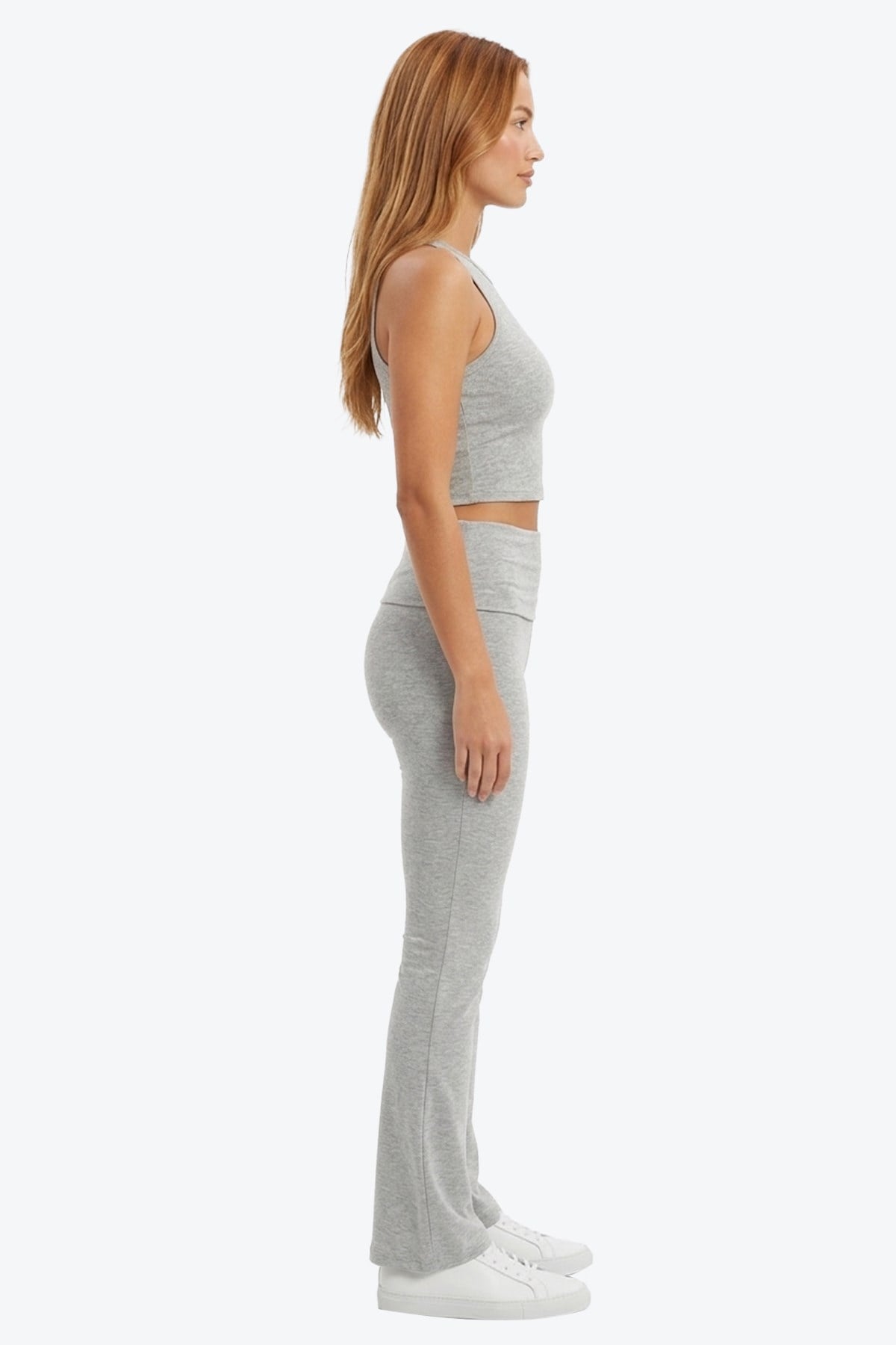 Gri Melanj Viskon Yüksek Bel Kemer Detaylı İspanyol Paça Kadın Pantolon Flared (CH30013704GR)