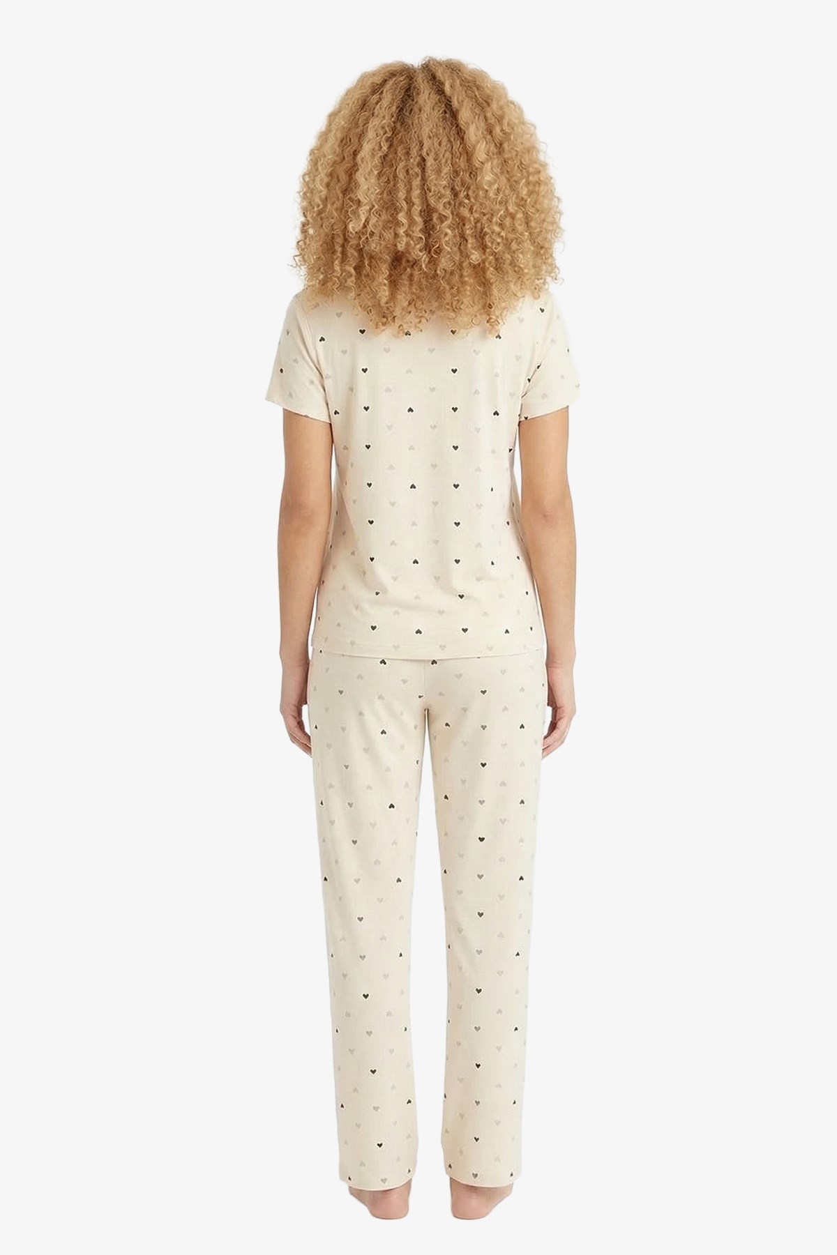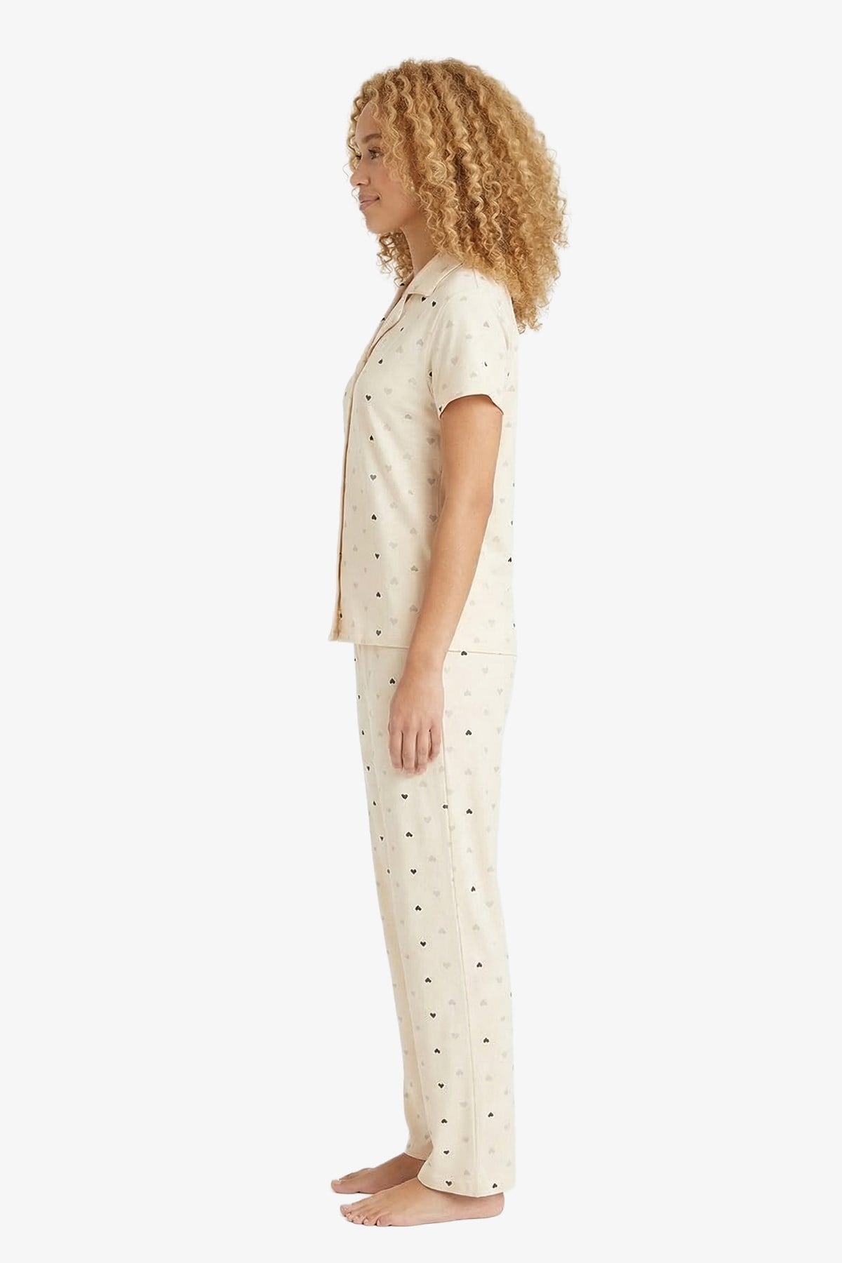 Krem Kalp Desenli Yumuşak Dokulu Gömlek Yaka Kadın Pijama Takımı (CH15273506KM)