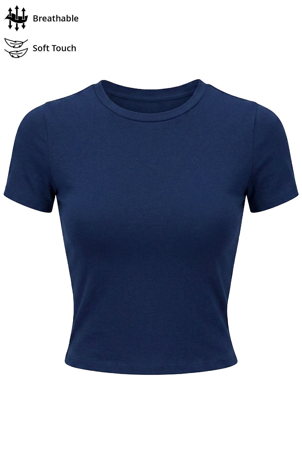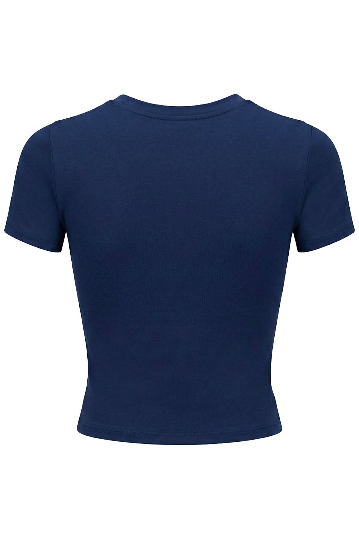 Lacivert Viskon Bedene Oturan Bisiklet Yaka Kısa Kollu Kadın Crop Tişört (CH30033704LC)