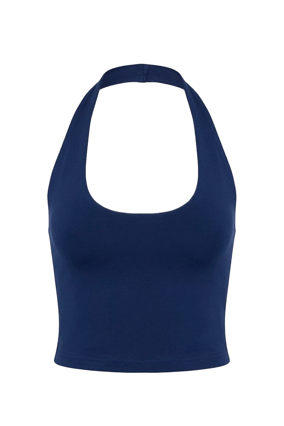 Lacivert Viskon Halter Yaka Sırt Dekolteli Kadın Crop Atlet (CH30053704LC)