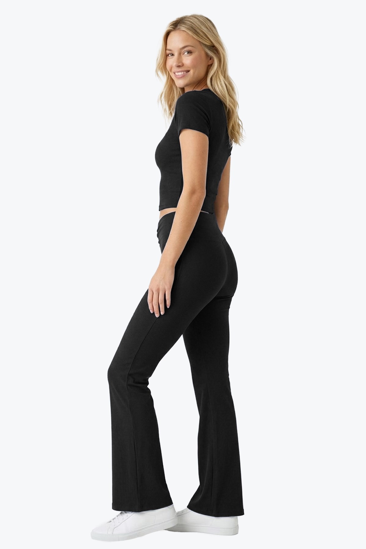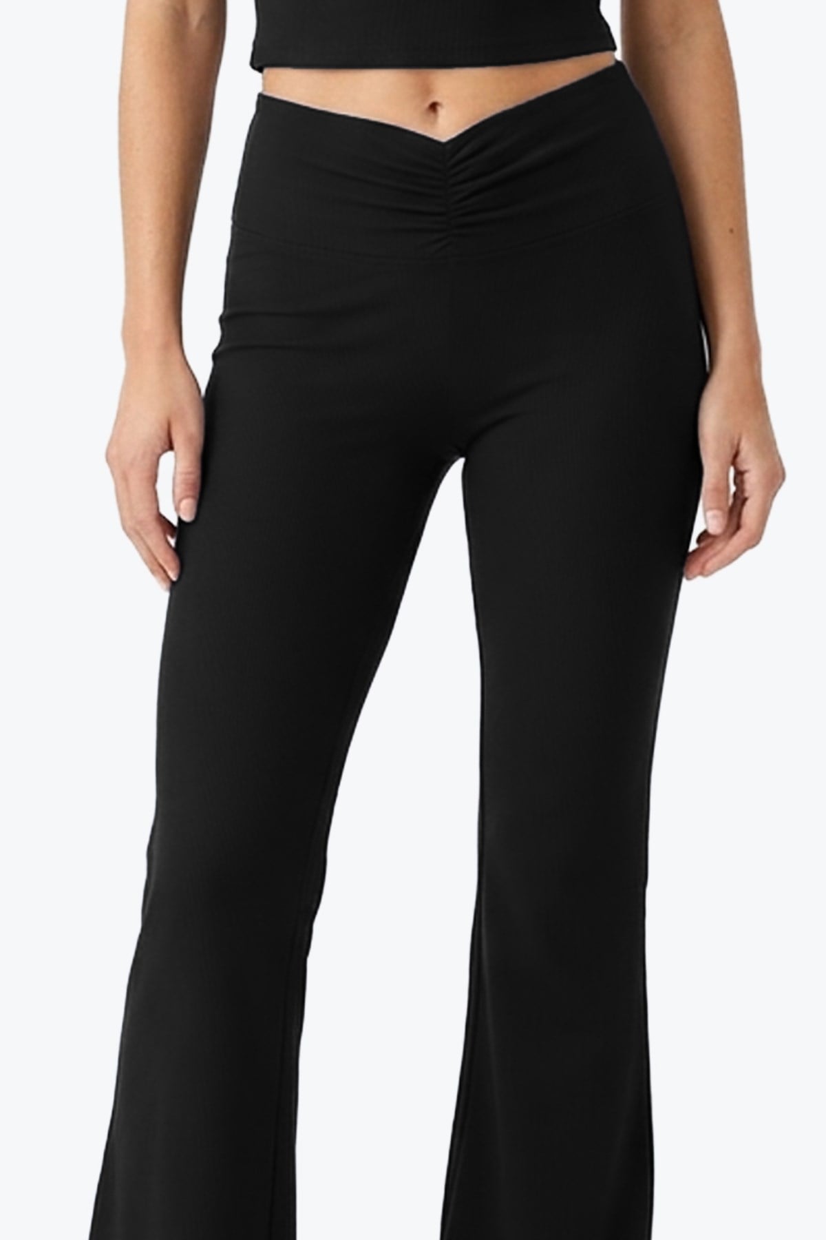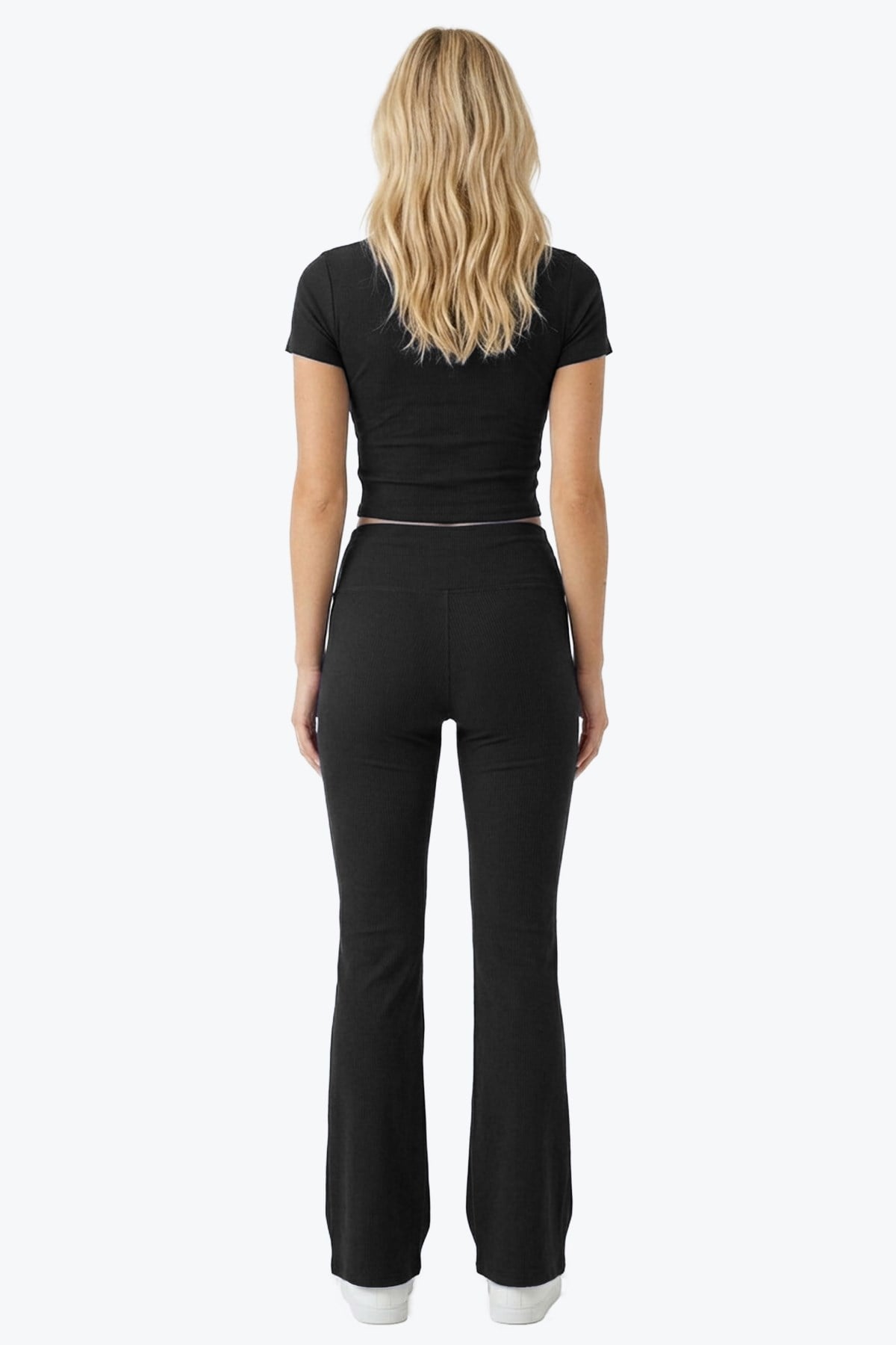 Siyah Viskon Yüksek Bel Önü Büzgülü İspanyol Paça Kadın Pantolon Flared (CH30003704SY)