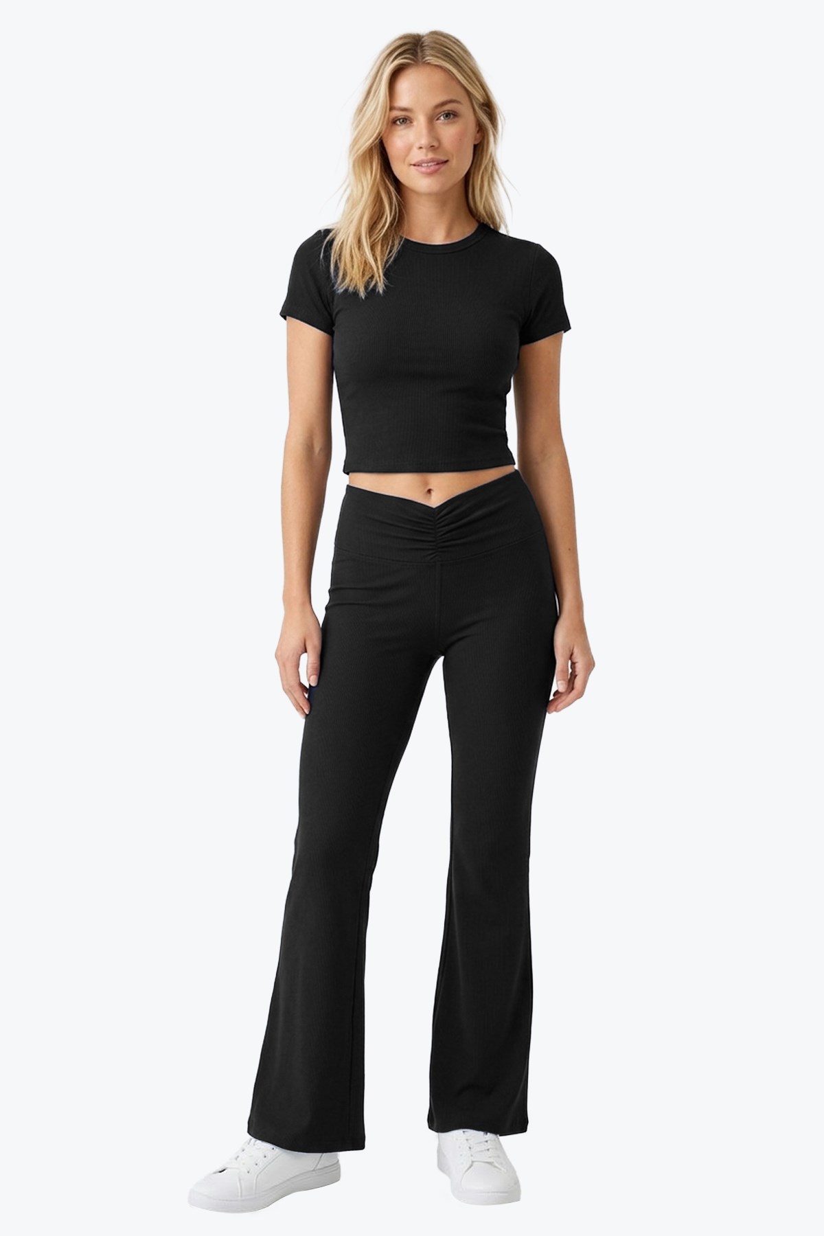Siyah Viskon Yüksek Bel Önü Büzgülü İspanyol Paça Kadın Pantolon Flared Lacivert Viskon Yüksek Bel Önü Büzgülü İspanyol Paça Kadın Pantolon Flared Gri Melanj Viskon Yüksek Bel Önü Büzgülü İspanyol Paça Kadın Pantolon Flared