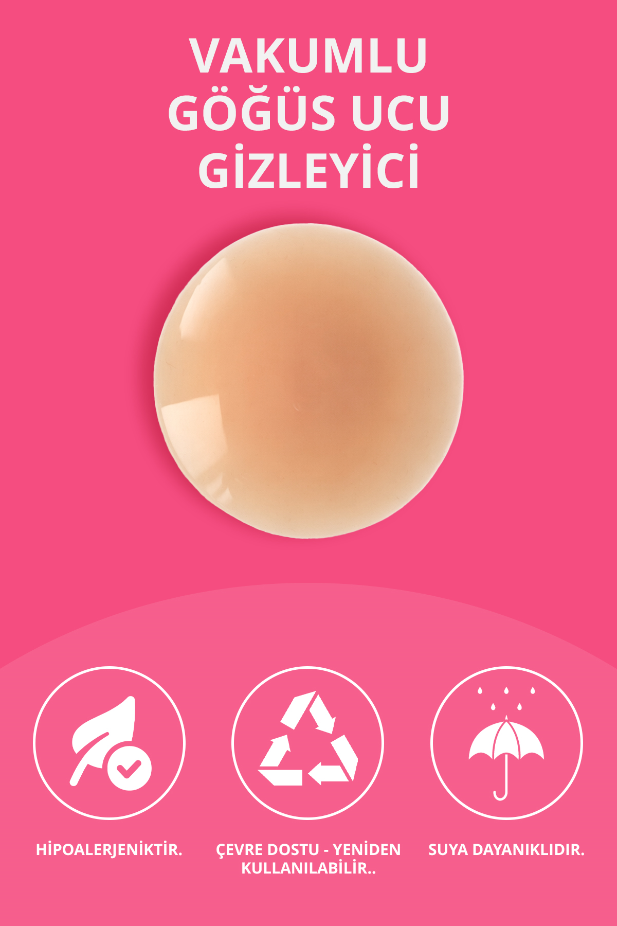 Doğal görünüm, maksimum konfor! Ten rengi vakumlu yapışkansız göğüs ucu kapatıcı, sütyensiz veya ince kumaşlı kıyafetler altında kusursuz bir görünüm sunar. Özel vakum teknolojisi sayesinde cilde yapışkan kullanmadan tutunur, ciltte tahriş ve iz bırakmaz.