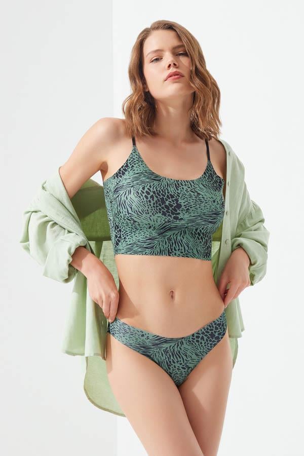 Yeşil Desenli Ayarlanabilir Askılı Lazer Kesim Kadın Crop Büstiyer (CH17531205DSN18)