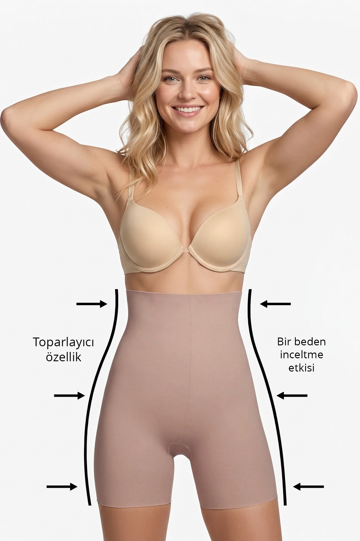 Yüksek Bel Toparlayıcı Lazer Kesim Kadın Korse Kahverengi-Ten 2'li Paket