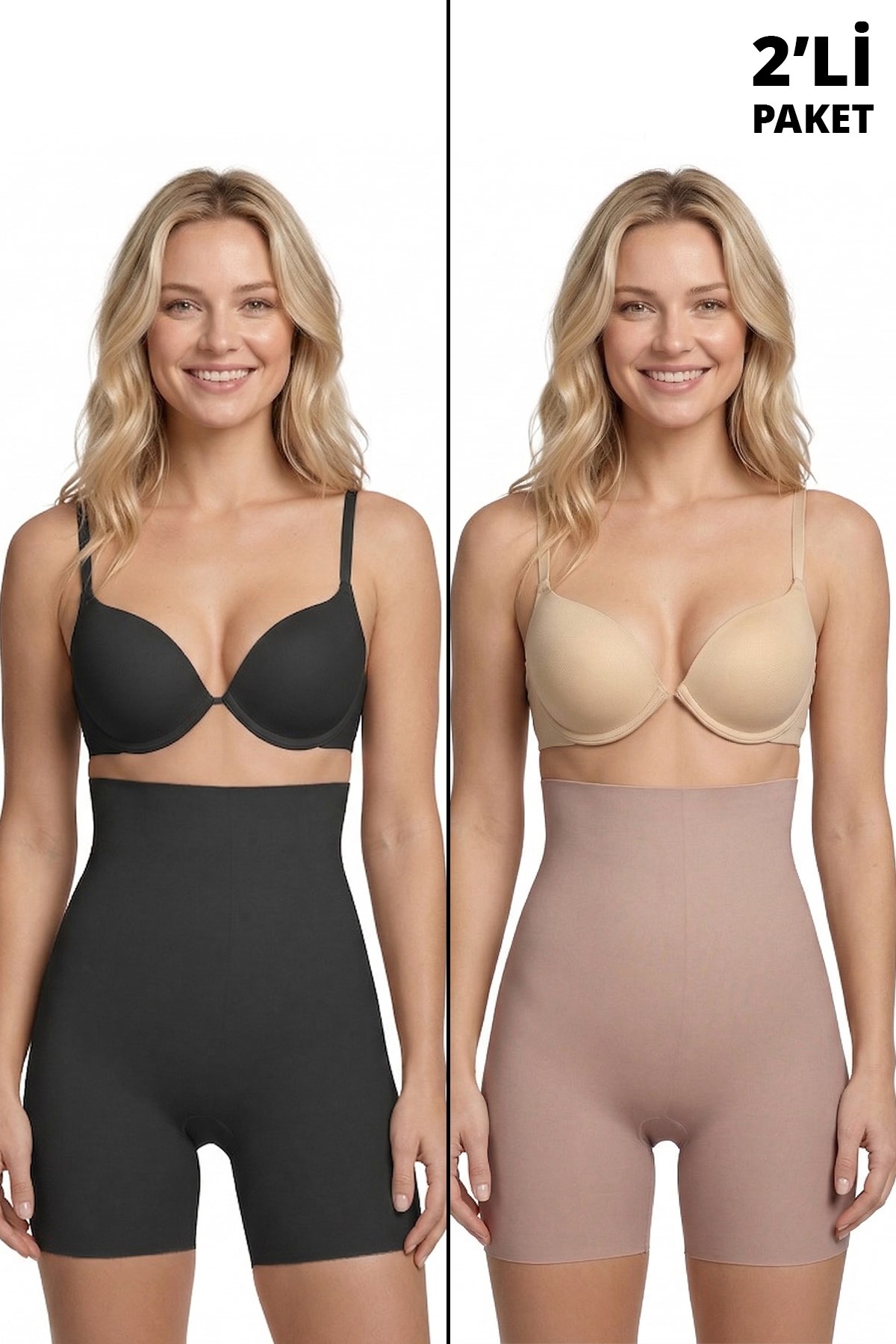 Yüksek Bel Toparlayıcı Lazer Kesim Kadın Korse Siyah-Kahverengi 2'li Paket