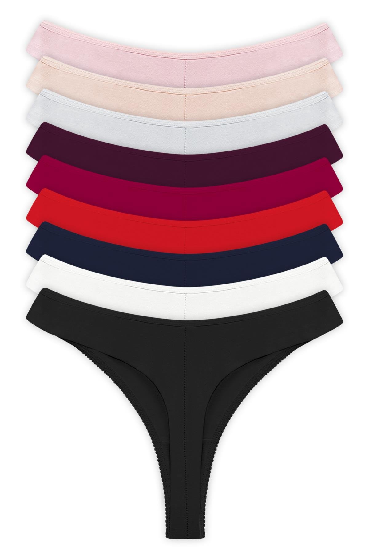 Paket içerisinde 1 adet Siyah, 1 adet Lacivert, 1 adet Kırmızı, 1 adet Mürdüm, 1 adet Pudra, 1 adet Vişne, 1 adet Gri, 1 adet Kahverengi, 1 adet Krem renk ürün bulunmaktadır.