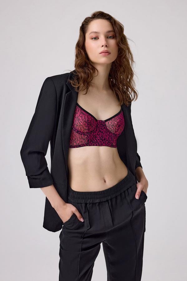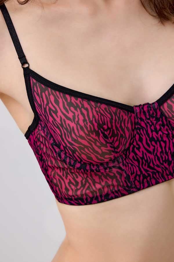 Fuşya Desenli Ayarlanabilir Askılı Balenli Özel Bölgesi Açık Tanga Külotlu Kadın Sütyen Takımı