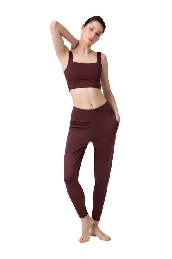 Kahverengi Yüksek Bel Çift Cepli Kadın Jogger Eşofman Altı