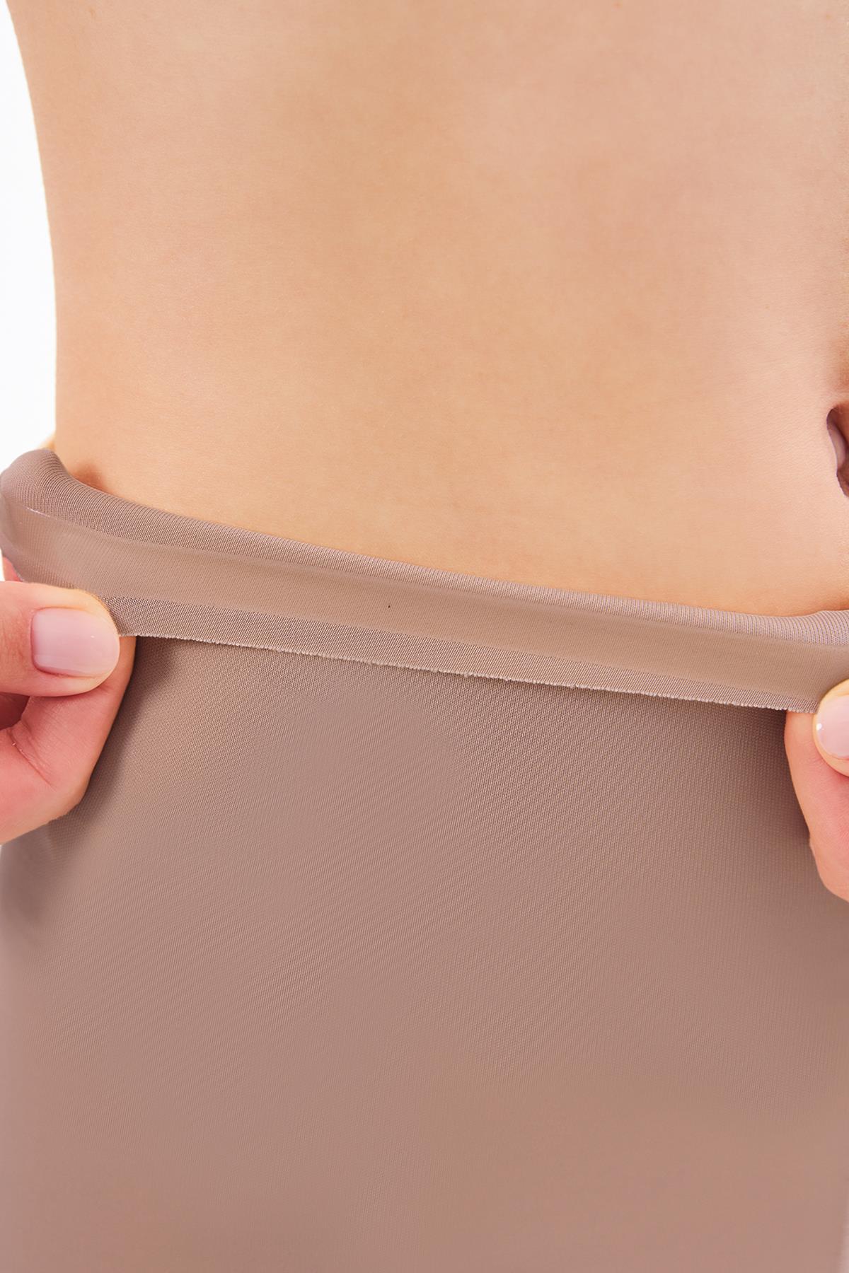 Kahverengi Yüksek Bel Toparlayıcı Lazer Kesim Kadın Korse
