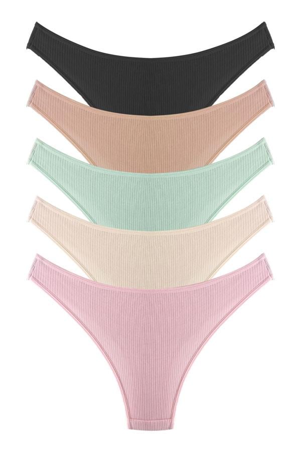 Kadın Pamuklu ve Likralı Fitilli Kaşkorse Brezilya Külot 5'li Paket