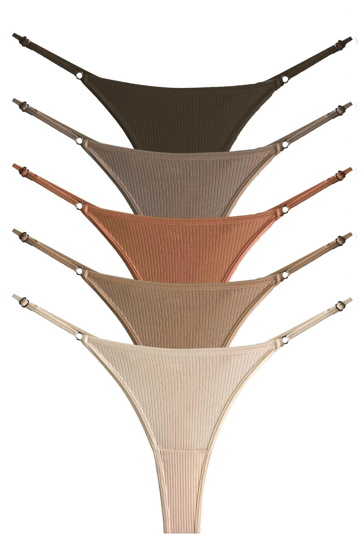 Pamuklu ve Likralı Ayarlanabilir Lastikli Kaşkorse Fitilli Kadın Tanga Külot 5'li Paket-2
